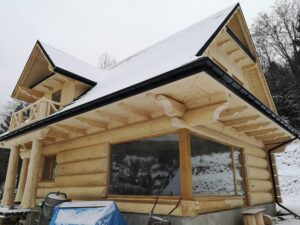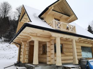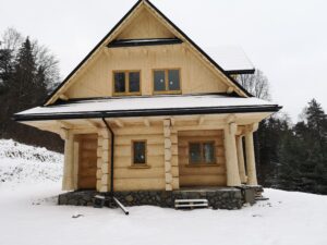 Prezentujemy wyjątkowy dom wykonany z bali świerkowych o przekroju półbala i średnicy ok 24 cm, zrealizowany w tradycyjnej technologii ciesielskiej, charakterystycznej dla podhalańskiego rzemiosła.